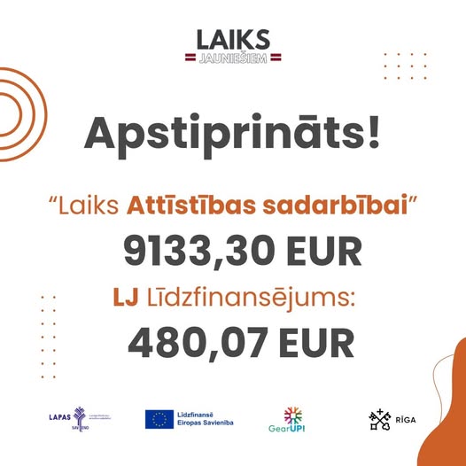 Projekts “GearUP” tiek īstenots ar Eiropas Savienības finansiālu atbalstu. Par “Laiks Attīstības sadarbībai” projekta saturu atbild Laiks Jauniešiem, un tas ne vienmēr atspoguļo Eiropas Savienības viedokli.