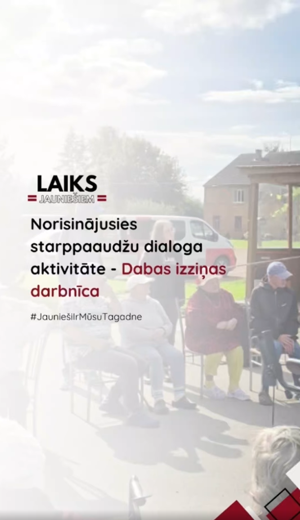 Kopīgi ar senioriem izzinājām dabu – dzīvniekus, kokus, upes, ģeogrāfiju, piedaloties viktorīnā un veicot dažādus uzdevumus, sekmējot starppaaudžu dialogu un sadarbību.