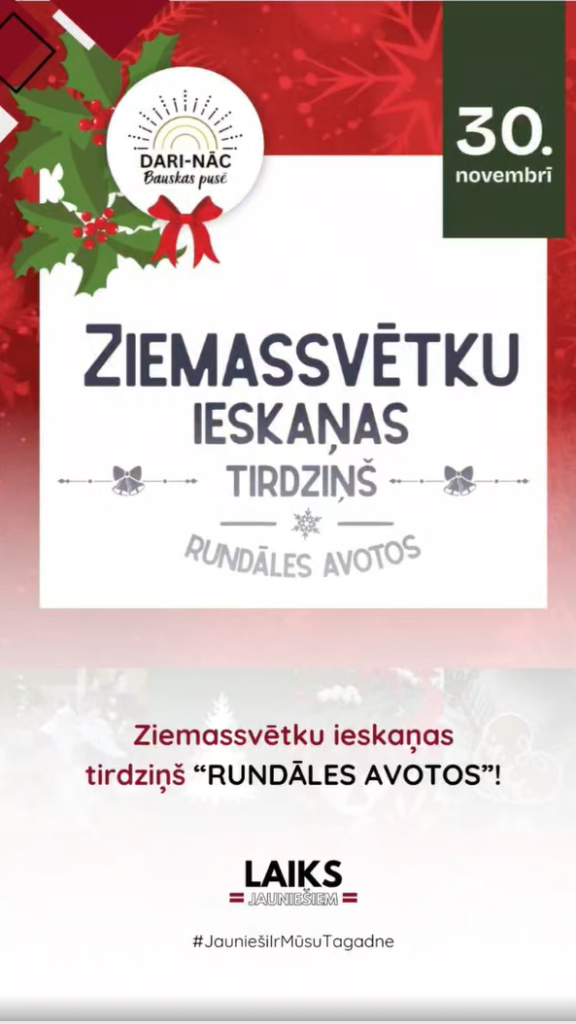 Tiekamies jau 30.novembrī no plkst. 11.00 līdz 15.00 Rundāles Avotos!