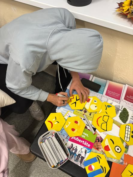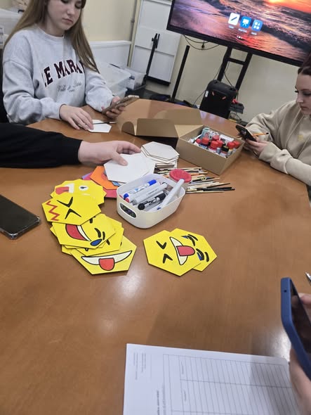 Šoreiz mūsu mērķis bija izveidot sienas dekorāciju – emocijzīmju sienu, lai “atdzīvinātu” sienu un dotu jauniešiem pārdomas par dažādām emocijām ikdienā.