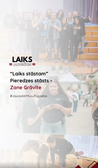 Ieteikums no Zanes – “Nāc, iesasties un izzini sevi vēl plašāk, izmēģinot sniegtās iespējas!”. Zane ir biedrības “Laiks Jauniešiem” valdes locekle. Ikdienā veido saturu organizācijas sociālajiem tīkliem, lai sniegtu dažādus atskatus no rīkotājiem pasākumiem.