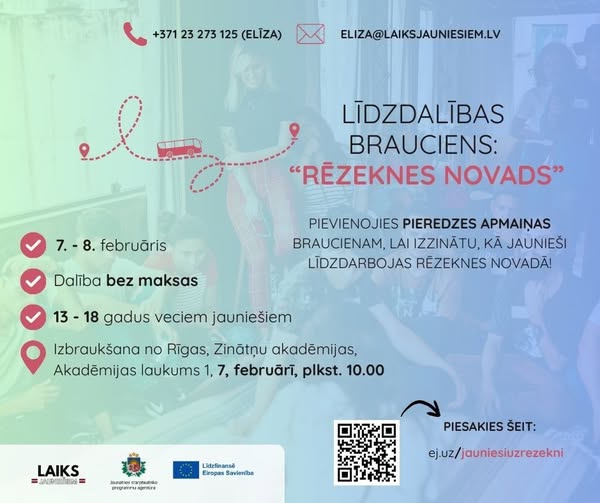Tā būs iespēja iepazīt vienu no skaistākajām Latgales pilsētām, satikt Rēzeknes novada jauniešus, kā arī dalīties pieredzē par aktivitāšu idejām, pasākumiem un jauniešu iespējām.