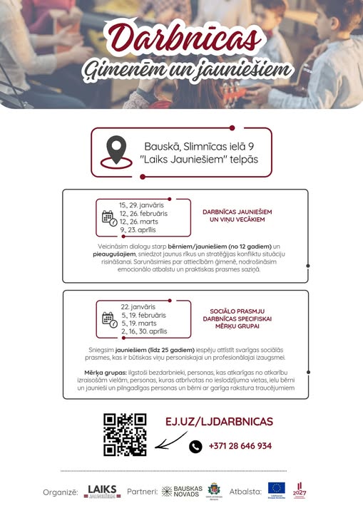 Aicinām pieteikties darbnīcām, kur kopīgi stiprināsim savstarpējo saiti, attīstīsim praktiskas prasmes un veicināsim izpratni par dažādām dzīves situācijām.