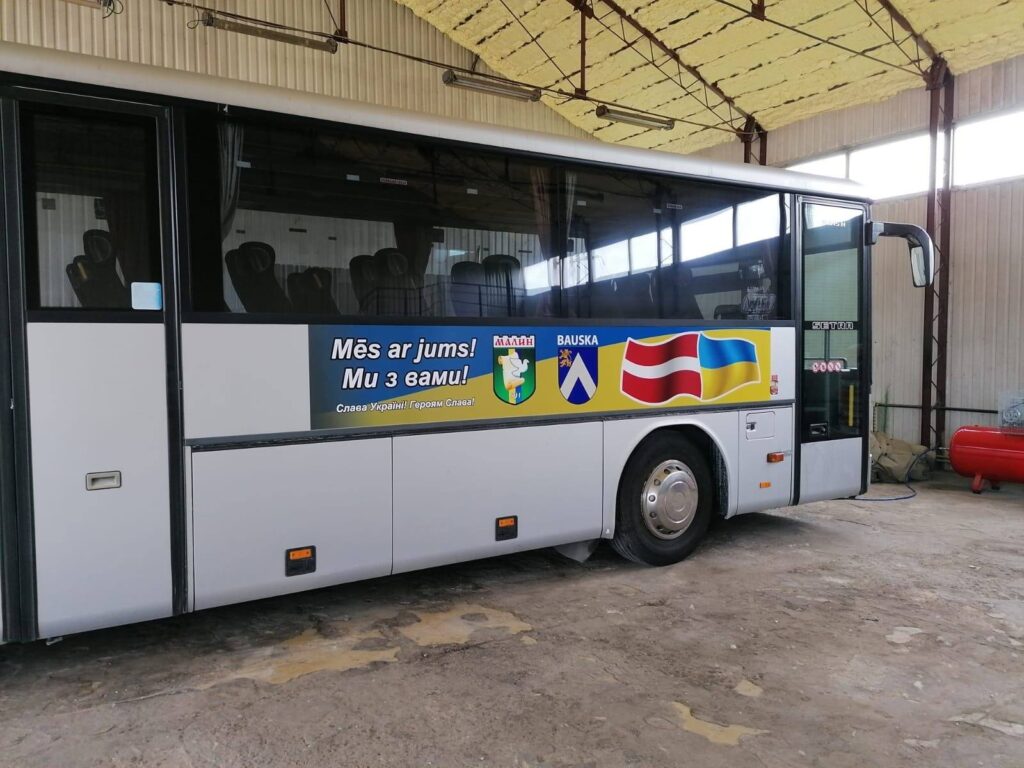 Iesaistīšanās pašvaldības autobusa nogādāšanā kā ziedojumā pilsētai Malinā, lai tas kalpotu cilvēkiem un vajadzībām uz vietas.