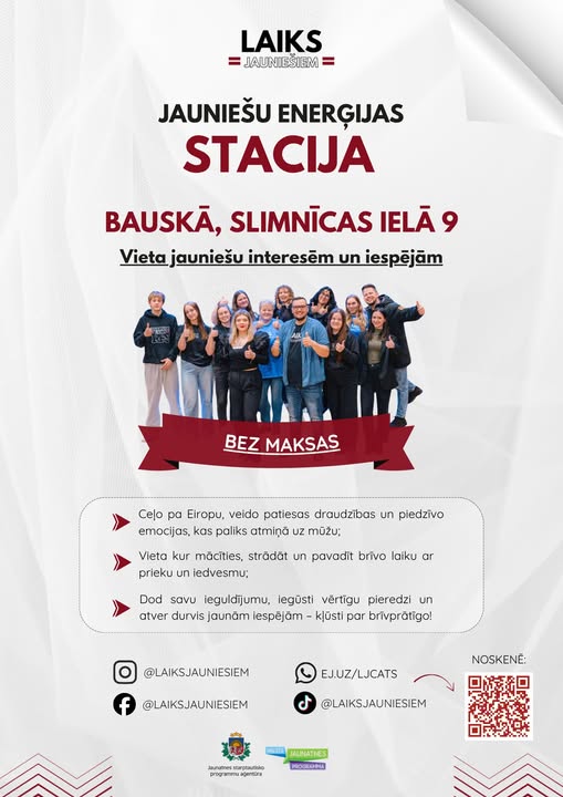 Heeey, jaunieši! Bauskā, Slimnīcas ielā 9 (no iekšpagalma puses) katru DARBA DIENU…